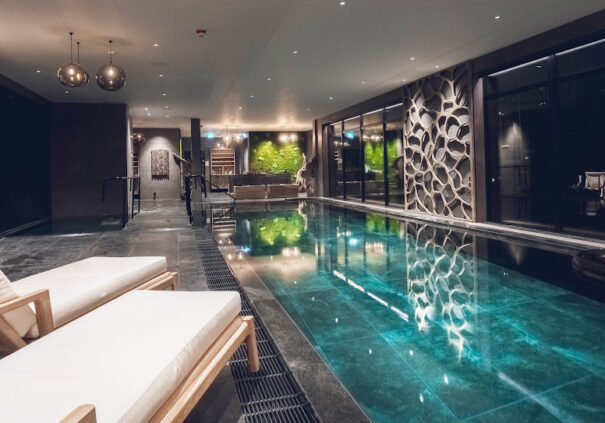 Para crear una experiencia holística en consonancia con el bello entorno natural, Astad recurrió a Efterklang, expertos en diseño de sonido, acústica y control de vibraciones, para desarrollar un concepto de sonido que pudiera aplicarse en las distintas zonas del recinto, y especialmente en el spa, que evoca el entorno natural circundante y armonizara con las demás impresiones sensoriales en los distintos espacios.