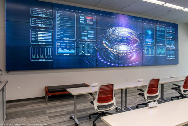En el Laboratorio de visualización de la Universidad de Nuevo México se ha instalado un videowall Planar Clarity Matrix G3 (MX65U), en una configuración de 6×3. Además, la solución incluye una red troncal AV Crestron DM NVX para el transporte de vídeo.