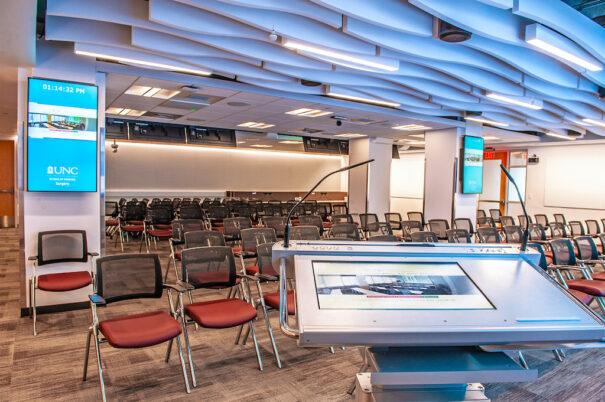 In addition to the extensive Education Center, the project includes new office spaces and conference rooms, which have been completed after three years of work. When UNC's new surgery tower opens this year, the final leg of AV connectivity to the tower's operating rooms will be established through the computer network.