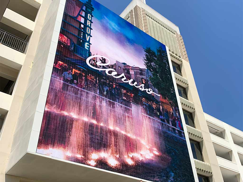 Caruso también ha renovado la marquesina del teatro en AMC The Grove 14 con una marquesina digital curva de 28,9 meters long.