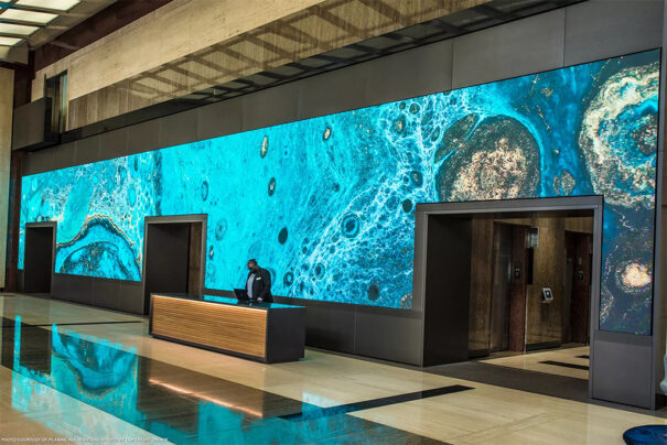 El contenido del gran videowall Led de la serie Planar TVF ha sido seleccionado e incluye una combinación de escenarios temáticos y obras de arte digitales personalizadas. “Se trata de un vestíbulo precioso e impresionante, y la intención del lienzo Led es crear una atmósfera envolvente y relajante, un lugar que atraiga a la gente a venir y relajarse”, dijo Ravenel.