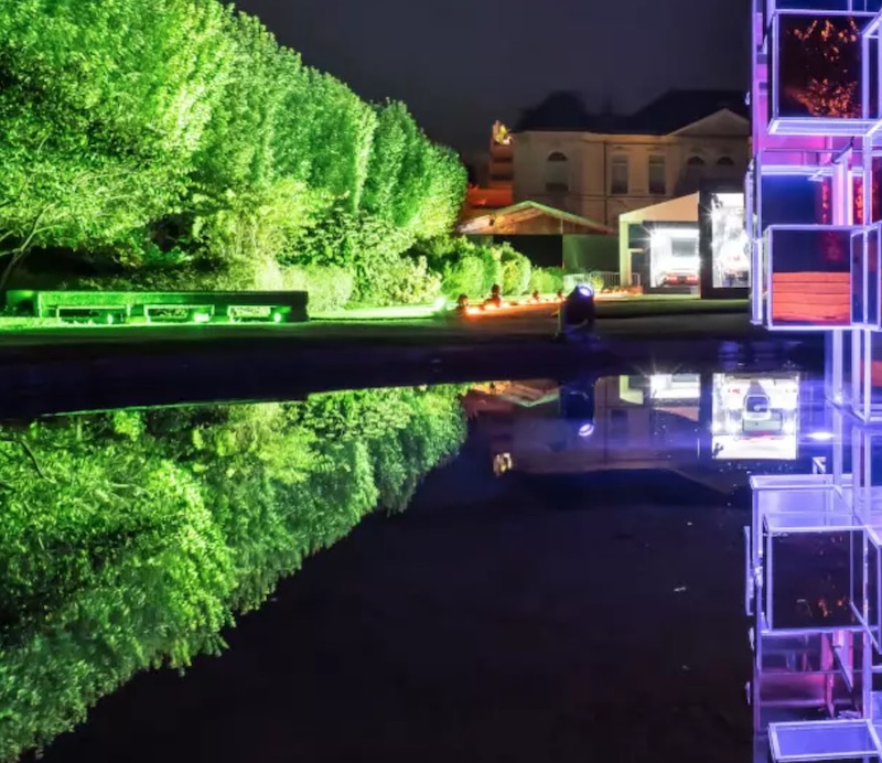 Esta instalación de arte inmersivo de 360º y de 6×6 metros se configura con grandes cubos con superficies exteriores de espejos y superficies interiores que son pantallas individuales. El contenido multimedia y las superficies exteriores de espejos interactúan con el entorno para convertir la instalación en una obra de arte dinámica.