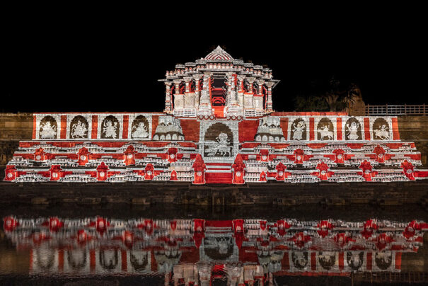 Modern Stage Services realiza un espectáculo de videomapping en el Templo del Sol de Modhera con Pixera of BY Stumpfl.