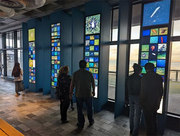 Las torres interactivas brindan oportunidades para que los visitantes vean las últimas imágenes de MBARI y profundicen en la comprensión de las ciencias marinas.