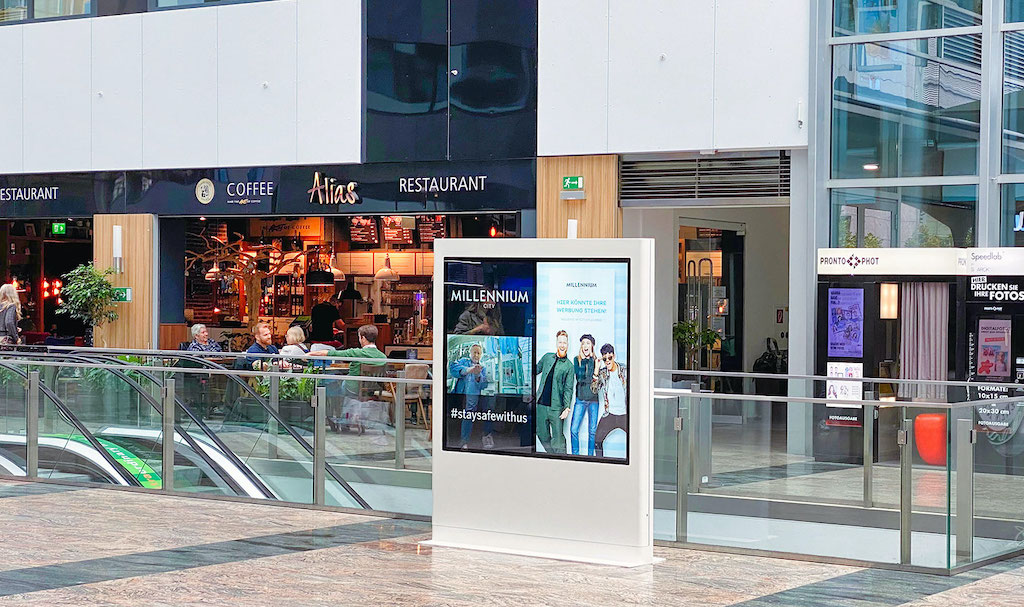 Macroservice suma a su propuesta estas pantallas para su aplicación en centros comerciales como mupis de información y publicidad; quioscos de autoservicio en restaurantes de comida rápida o en escaparates de retail, agencias de viajes, etc.