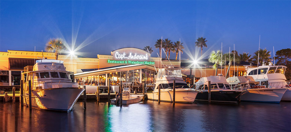 Founded in 1967 como un pequeño restaurante de mariscos de propiedad familiar, Captain Anderson se ha convertido en un centro gastronómico para turistas y lugareños. Además de entrar a formar parte de la lista de los 50 mejores restaurantes de Estados Unidos y el más reconocido establecimiento de mariscos de Southern Living.