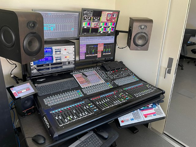 Cada SD10B de 37 faders se muestra como la consola principal de cada una de las dos salas de control de la suite multimedia. Una de las consolas SD9B de 24 faders instaladas anteriormente se encuentra ahora en una sala de control independiente, conocida localmente como ‘El nido de las águilas’, en referencia a la mascota de BC, el águila Baldwin.