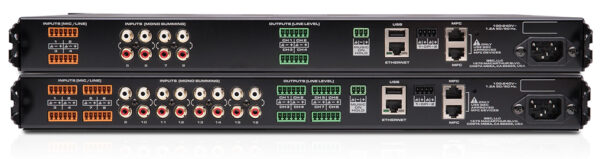 También admiten funciones de mezcla en directo para aplicaciones que requieren refuerzo de sonido de espectáculos, presentaciones o conferencias. Los usuarios finales pueden utilizar el módulo Compass Control MP-M para la gestión mediante GUI de la conmutación de routers/matrices, el control de volumen/silencio de zonas y el de escenas.