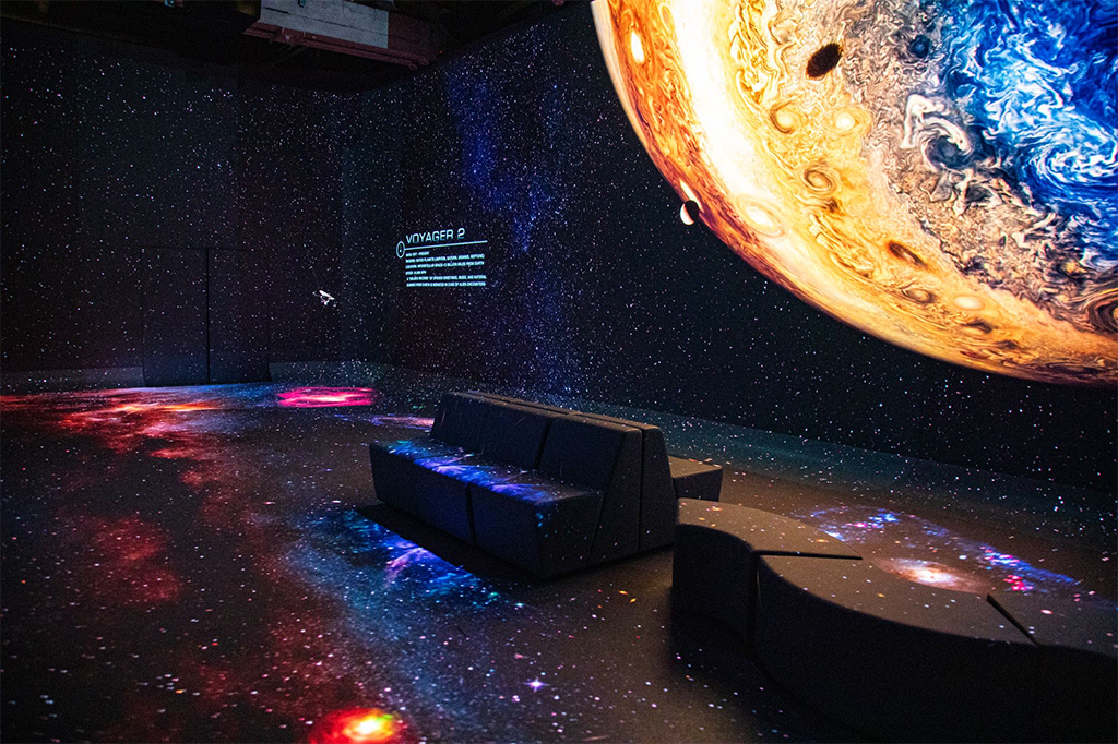 On the one hand, Waking Wonderland, Inspired by Lewis Carroll's classic novel “through the looking glass”, takes visitors through multiple projection environments and includes 7,2 millions of frames in real time and more than 30 unique interactions. On the other hand, Space: A Journey to the Moon and Beyond uses images from the James Webb Space Telescope to travel through the solar system, with screens 360 degrees and a countdown to take off in a rocket.