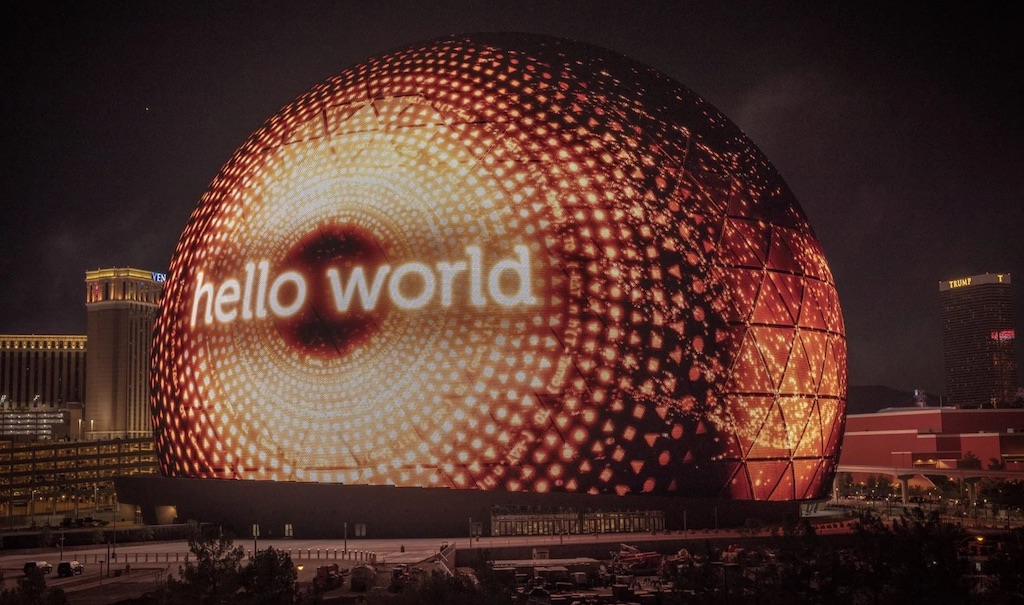 For your part, Exosphere es la pantalla Led exterior más grande del mundo; un lienzo vívido que ha captado la atención internacional con una amplia gama de contenidos artísticos y de marca desde su que inició hace unos meses sus primeras pruebas y acciones (more details in Digital AV).