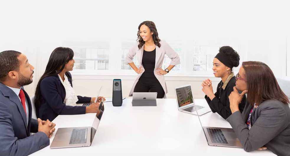 A ello se añaden cuatro parejas de micrófonos omnidireccionales ultra sensibles que garantizan una captura de audio completa en todas direcciones, idóneos para grabar o celebrar videoconferencias en grandes salas de reuniones.