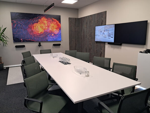 “It was important to show the evolution and future of meeting rooms in this space. As part of this, eliminating clutter and complexity on the table was a key factor in the design, making the room easy to use and understand. “The addition of Kscape Rail allowed us to include high-quality discrete audio and high-end lighting fixtures in a single unit.”, affirms Kris Hogg, Head of Samsung Partnerships.