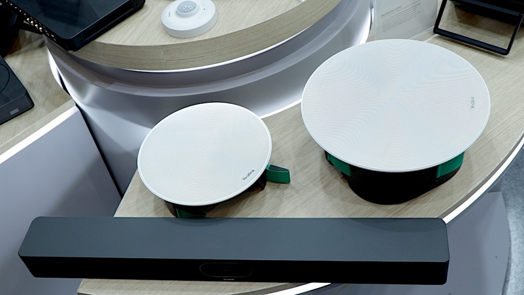 Los micrófono de techo que se ha presentado en Barcelona es el Yealink SkySound CM20, que utiliza dieciséis micros omnidireccionales independientes para recoger todo el sonido de la sala (de hasta 60 metros cuadrados).