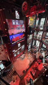 Ole Red Las Vegas ofrece música country en directo en el escenario principal desde que se abren las puertas por la mañana hasta que se cierran por la noche. Distribuida en tres niveles -una planta baja con dos niveles de terrazas con vistas al escenario principal-, todas son zonas de comedor donde los clientes pueden disfrutar de música country de calibre de concierto desde sus asientos.