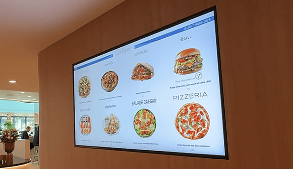 Los tableros de menú digitales estratégicamente ubicados que presentan precios dinámicos e imágenes generadas por IA dan vida a las experiencias culinarias incluso antes de que los huéspedes y el personal residente entren a cualquiera de los tres establecimientos de alimentos y bebidas de Millennium. Las integraciones simples de la base de datos con el sistema POS actualizan automáticamente los elementos del menú diario y los precios en exhibición.