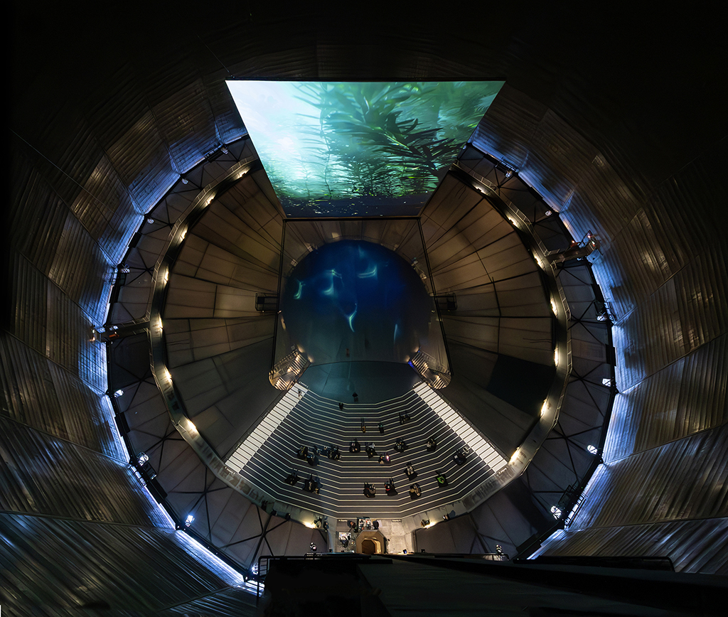 La instalación forma parte de Planet Ozean (Planeta Océano), una nueva exposición centrada en la belleza de los mares del mundo que se inauguró en el Gasómetro el pasado mes de marzo. Destaca la obra inmersiva a gran escala Die Welle (La Ola), centrada en una pantalla de proyección Flex Contrast PRO de AV Stumpfl personalizada que se eleva 40 metros hacia el cielo desde la galería central.