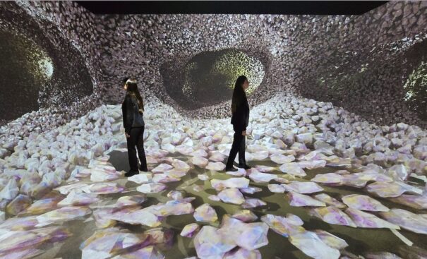 Dividido en dos fases -inmersión e interacción-, este espacio único combina proyecciones audiovisuales, superficies táctiles y ofrece una respuesta multisensorial que conecta lo visual, lo táctil y lo sonoro.