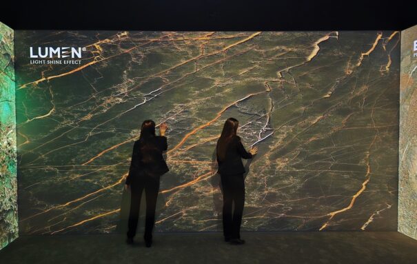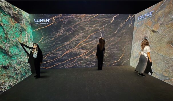 El proyecto diseñado por SomniaLab es una instalación inmersiva e interactiva, de 481x571x300 cm, diseñada para sumergir a las personas que participan de la experiencia en un recorrido multisensorial para explorar y conocer esta firma de cerámica, especializada en superficies de gran formato.