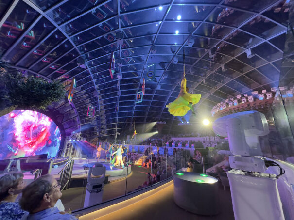 This commitment to Robe's Led technology has been installed not only in the public areas of the ship., but in all its areas of entertainment and leisure, like in the theater Princess Arena; in the glass-enclosed pool with stage for acrobatic shows The Dome, inspired by the hills of Santorini, in collaboration with the Éloize circus; the room with uninterrupted activities Princess Live!, as well as in The Square, spanning three decks and featuring outward-facing suspended spheres that transport guests to new dimensions with expansive ocean views, with moving stages and a three-story Led display wall, among others.