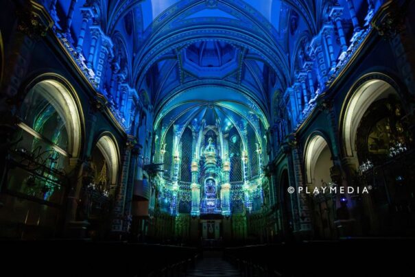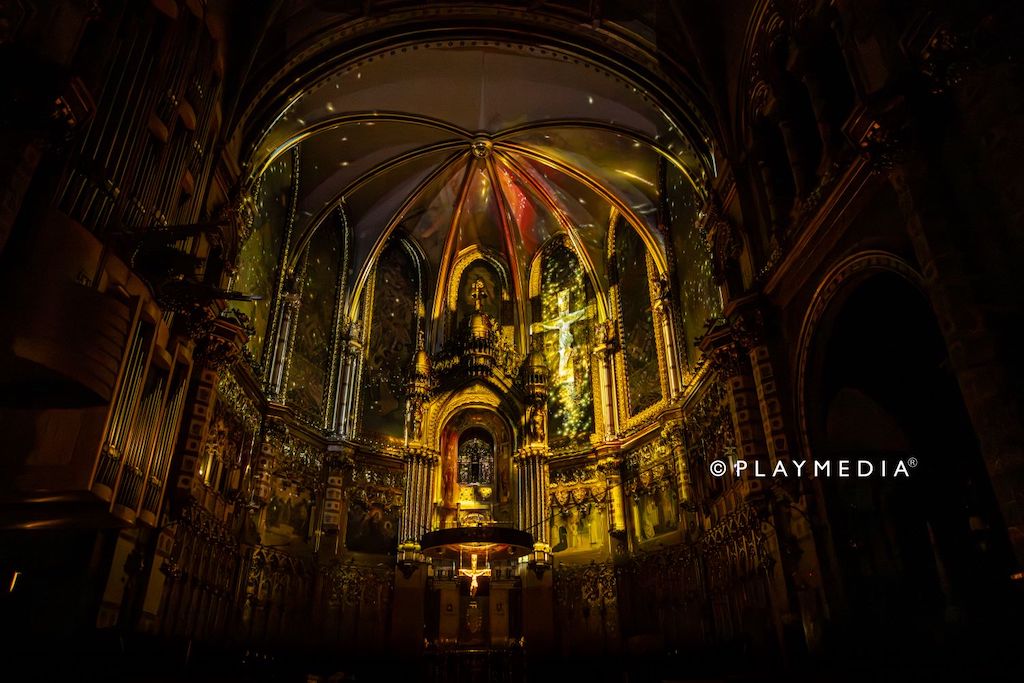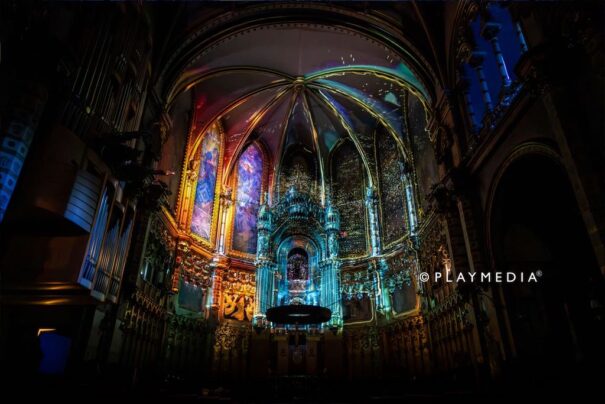 Playmedia Group ha diseñado y ejecutado un proyecto de gran formato en la Basílica de Montserrat, provincia de Barcelona, transformando este icónico lugar en una experiencia inmersiva única.