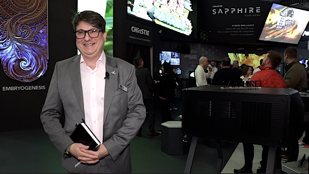 Una de las grandes apuestas en este sentido ha sido el debut en el certamen del proyector Sapphire 4K40-RGBH, “un equipo híbrido con tecnología láser RGB y láser fósforo, pensado para aplicaciones de parques temáticos y realidad virtual -explica Marcos Fernandez, Country Manager para España y Portugal en Christie-. Un equipo compatible con sistemas 3D esteroscópicos activos, pasivos con filtros polarizado y también pasivos con el sistema Infitec comb 3D”.