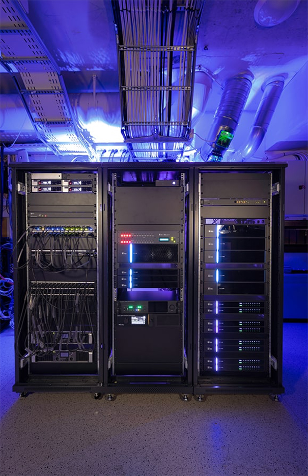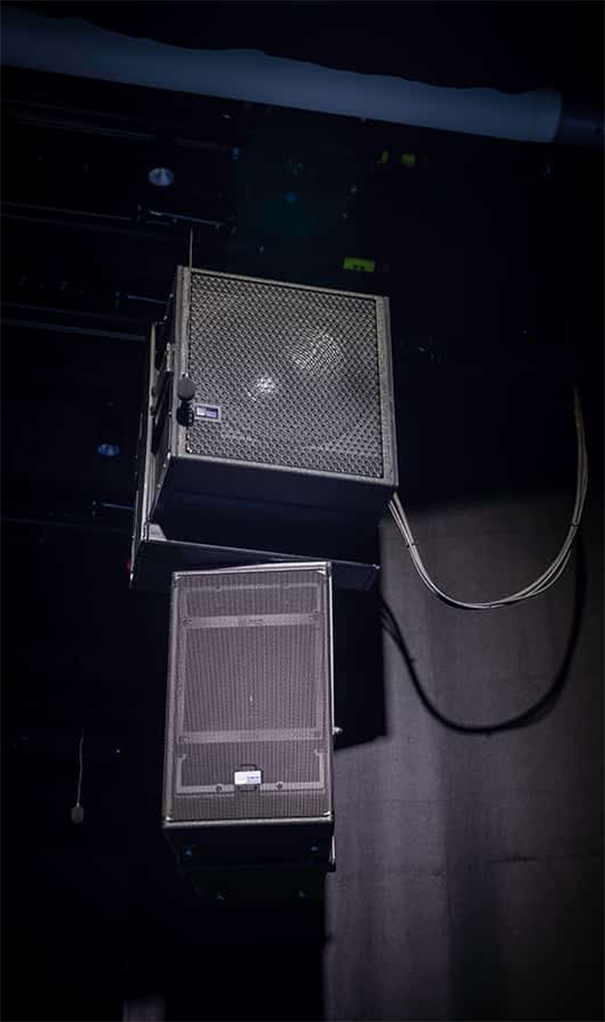 The Meyer Sound Constellation installation, designed by the Meyer Sound Constellation team in collaboration with LTB, consists of 60 speakers and 24 microphones. The speakers include four MM‑4XP miniature self-powered loudspeakers, 16 of UP‑4slim ultra-compact installation, 26 HMS‑5 cinema surrounds, four HMS‑10 cinema surrounds y 10 subwoofers en miniatura MM‑10.