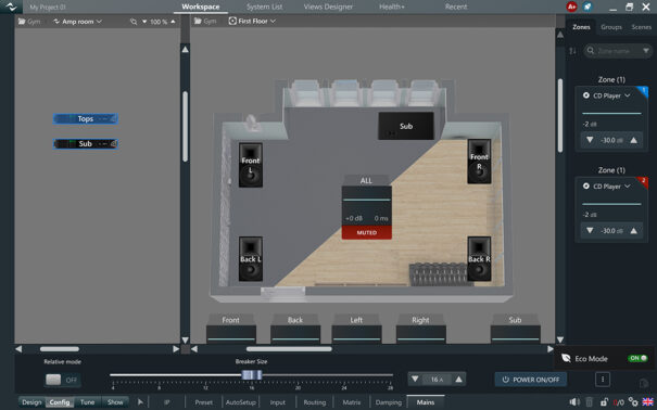 Con un enfoque en la simplicidad, HarmonyPlus 2.8 ofrece mejoras significativas en el diseño del sistema, la sintonización y la gestión de dispositivos, además de una asignación de grupos optimizada para una visualización más rápida. Al seleccionar un altavoz, los nombres de los grupos asociados se resaltan en azul. Esto agiliza la navegación entre elementos y la verificación de asignaciones en el sistema.