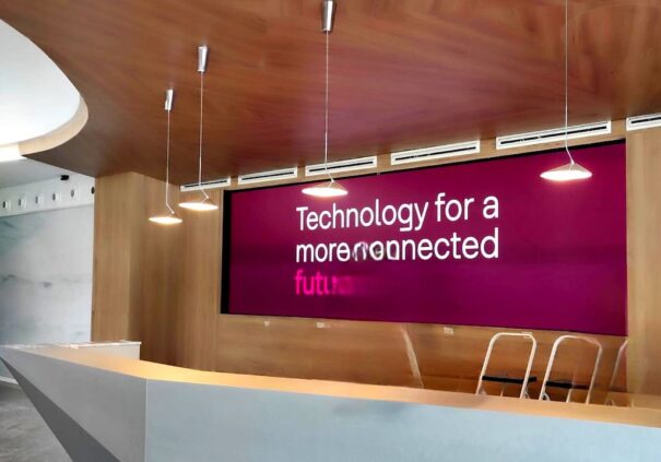 This project pone en valor en toda su sede el uso de la última tecnología audiovisual para utilizarse en cada ámbito de su operativa en sus diferentes espacios, sin perder la identidad de marca, desde la recepción, el auditorio hasta salas vip y de videoconferencia, así como en distintas ágoras destinadas a la comunicación corporativa, interna y externa, de la multinacional.