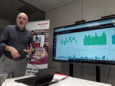 Tres salas de capacitación modulares dan respuesta a estas necesidades y cada una cuenta con una pantalla táctil Crestron para controlar las cámaras de vídeo inteligentes, el volumen y las fuentes de contenido de la pantalla de 136 pulgadas ubicada al frente de la sala.