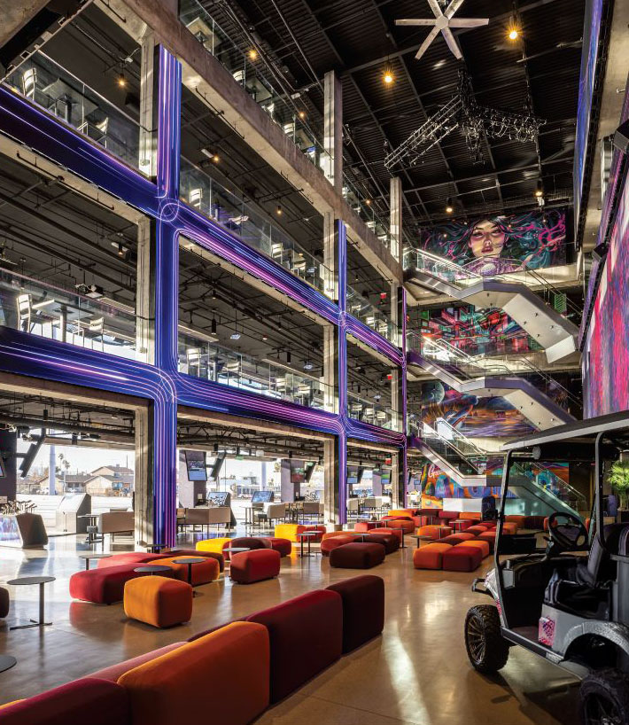 Atomic Golf , located next to The Strat hotel, casino & tower in las vegas (EU), is an innovative space around this sport that offers its visitors a immersive experience with technology through gaming and entertainment, combining a driving range, event spaces and a nightclub (more details in Digital AV).