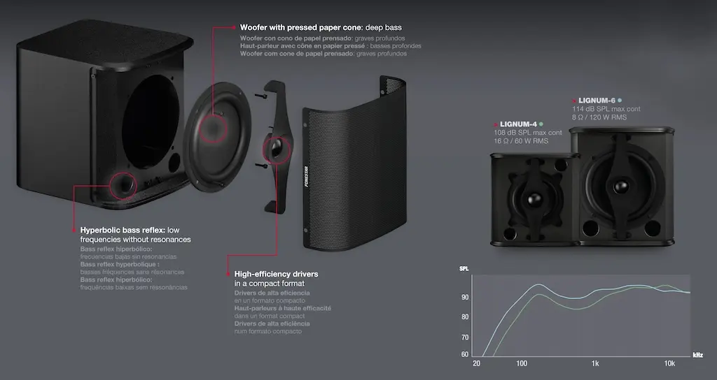 Beyond performance, The series responds to a growing demand in AV integration: the visual discretion. With a compact design, clean lines and careful finishes, Lignum integrates into the architectural environment minimizing the visual impact, an especially relevant aspect in hospitality and retail projects where the user experience is key.