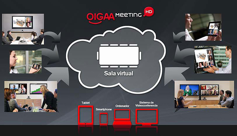 La conexión a las salas virtuales de OIGAA Meeting las realiza el usuario a través de Internet desde los equipos de sala indicados o bien a través de equipos existentes de videoconferencia de otros fabricantes homologados por VozTelecom, como son Polycom, CiscO-Tandberg, Panasonic o Vidyo. El acceso a las salas puede realizarse también desde cualquier ordenador personal Windows o MAC, así como desde dispositivos móviles como el iPad, con la simple descarga de una aplicación gratuita.