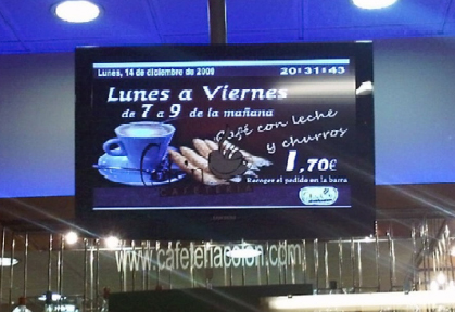 Navori a apporté son logiciel d'affichage numérique pour augmenter la rentabilité de la chaîne de télévision de la Cafétéria Colón à Irún (Guipúzcoa), à partir duquel le restaurant espagnol affiche des informations, offres spéciales, nouvelles et promotions locales.