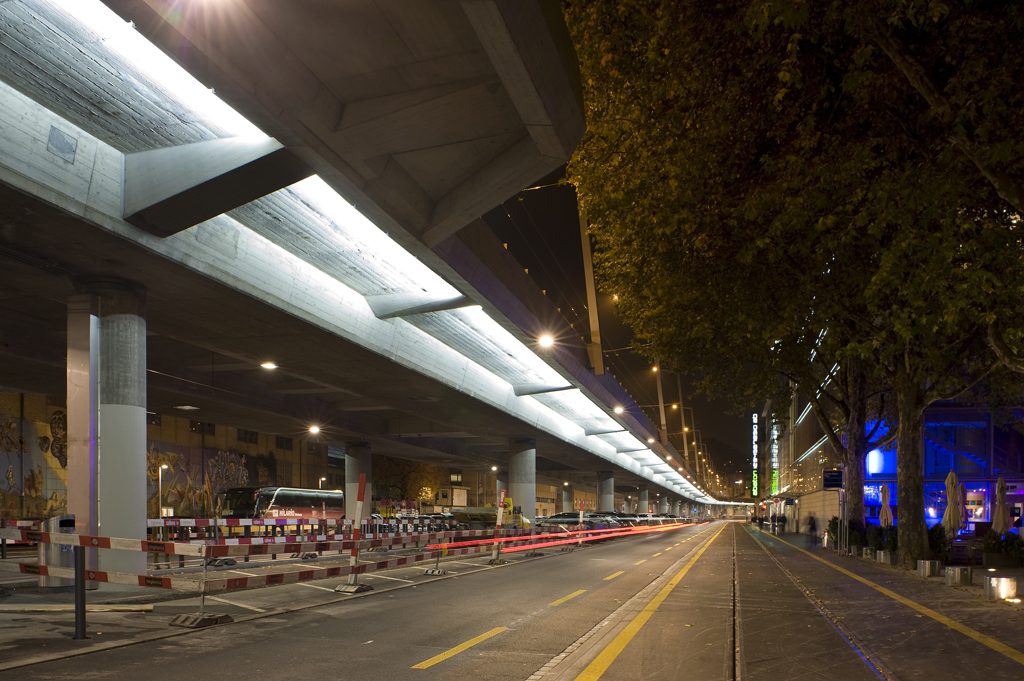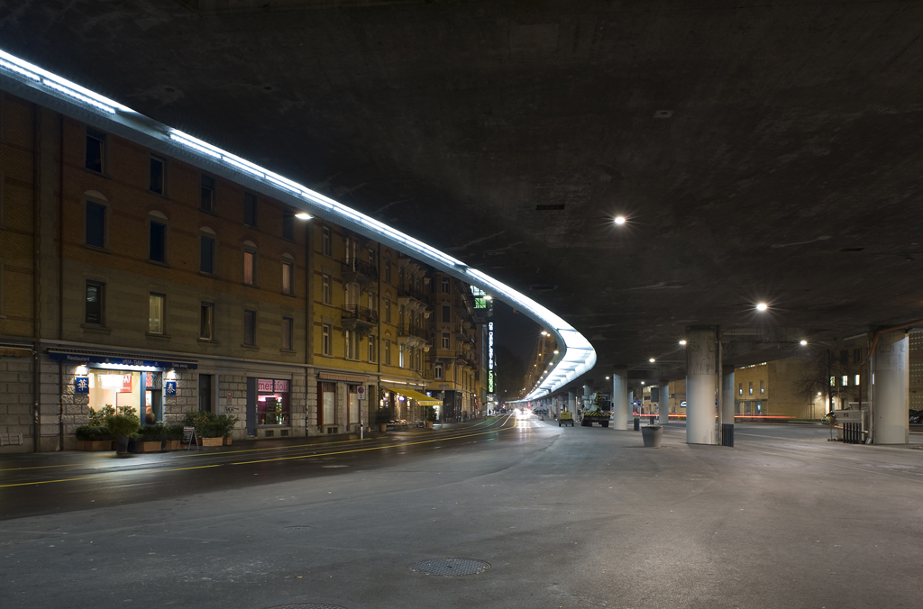 Philips ha llevado a cabo el proyecto de iluminación del Hardbrücke, un puente elevado de más de un kilómetro y medio de longitud que, salvando el río y las vías del tren, divide transversalmente el distrito quinto de la ciudad suiza de Zúrich.
