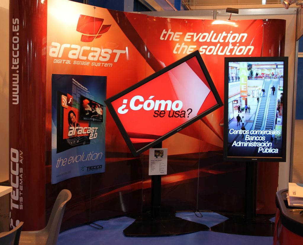 El Chief Operations Manager de Tecco, Luis Miguel Batuecas, asegura que acuden a la feria “en busca de distribuidores para vender nuestro software”. Compuesto por una plataforma hardware donde está instalado el software de Gestión Aracast, su fácil interface de usuario, su flexible sistema de licencias y diseño modular permite que pueda optimizarse desde pequeños entornos con un único editor/reproductor a amplias redes de reproductores conectadas a través de Internet.