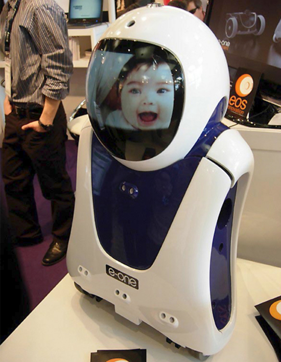 La compañía francesa de robótica EOS Innovation ha desarrollado el robot de telepresencia E-One como un medio para cuidar/monitorear a personas o simplemente para vigilar la casa de forma remota.