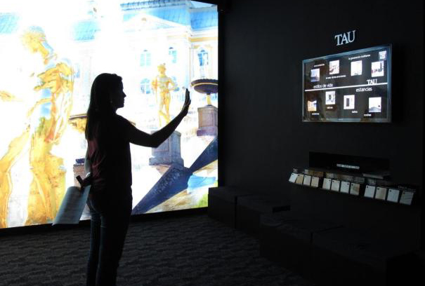 El sistema informático desarrollado consta de un punto de venta sin contacto con una pantalla de 50 pulgadas controlado por un dispositivo tipo Microsoft Kinect. Este sistema permite que sin que el usuario toque ningún elemento del punto de venta, e incluso utilizando piezas reales con etiquetas QR-CODE, éste pueda visualizar la colección de piezas cerámicas de la empresa TAU Cerámica basada en imagen de fotorealística.