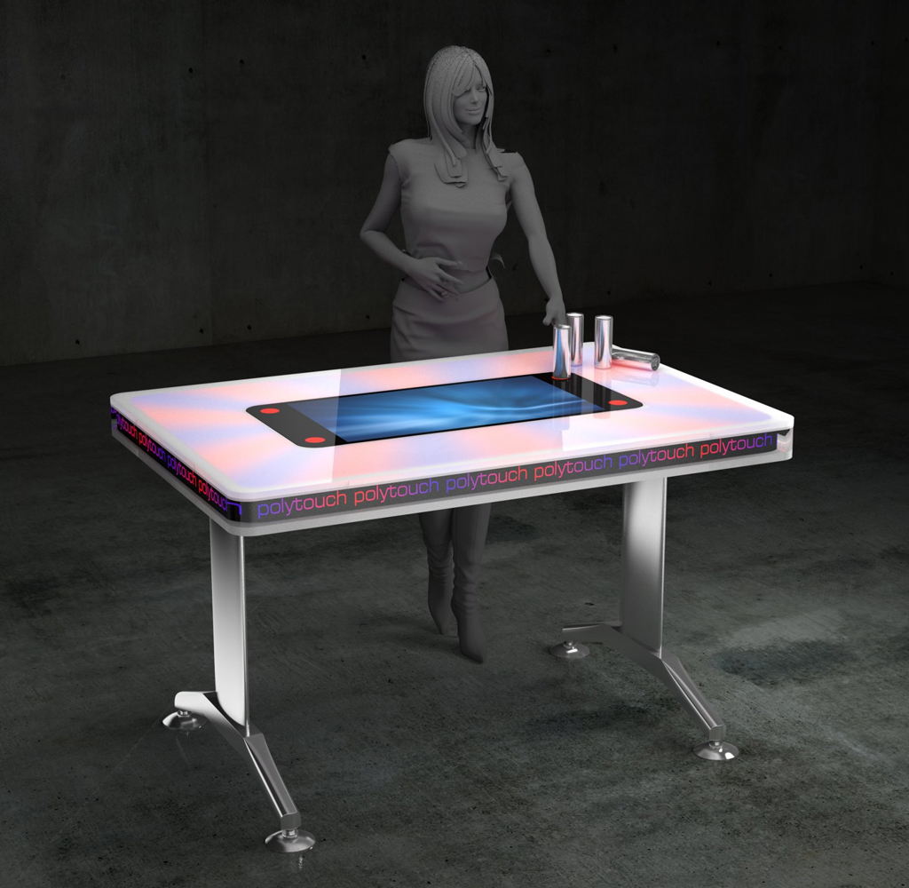 La mesa con sistema polytouch de 32 pulgadas integrado incorpora 150 LEDs programables de alto brillo y una pantalla LCD Full HD (1920 × 1080), que ofrece un amplio ángulo de visión y superficie no reflectante de cristal sólido. Cámaras integradas permiten que los objetos o documentos colocados en la superficie del vidrio sean reconocidos y registrados. En plus, la tabla ofrece la potencia de la última generación de procesadores Intel (Core i7-2600) con gráficos HD 2000, dando a los desarrolladores la libertad creativa de incorporar incluso la funcionalidad más avanzada de multi-usuario y 3D.