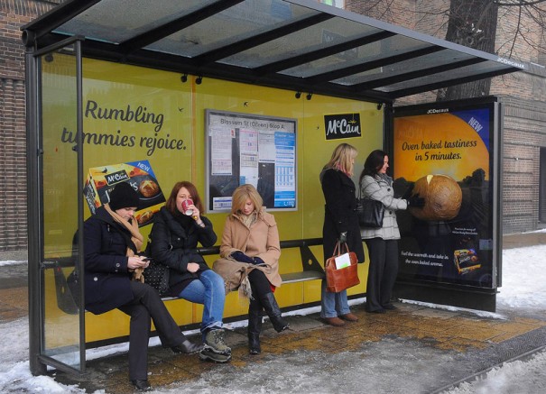 La empresa de patatas McCain acaba de implementar en Reino Unido una acción de Ambient Media en paradas de autobús bastante singular, ofreciendo a los viajeros que pacientemente esperan el autobús de turno la posibilidad de abrirles el apetito con el apetecible olor de sus nuevas patatas asadas Ready Baker Jacket que sólo necesitan meterse en el microondas para estar listas.
