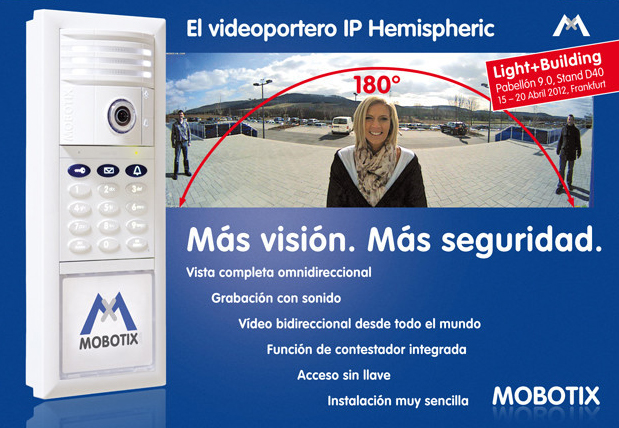 La feria Light+Building servirá de marco para la presentación de las nuevas cámaras y accesorios de Mobotix. En el stand D40 del pabellón 9.0 se podrán ver, entre autres, el videoportero IP T24 Hemispheric, incluyendo todos los módulos y una app para iPhone/iPad, así como la nueva unidad remota de vídeo T24-Display.
