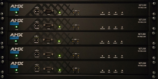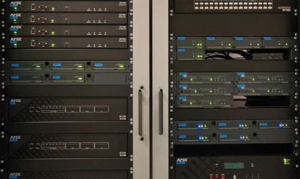La distribución de señales de video se realiza mediante señales HD-SDI con el propósito de tener una excelente calidad en cualquier display y poder grabar cualquier señal en HD. Se han utilizado 2 matrices AMX Autopatch de la serie Modula de 32×32 que cumple con todas la exigencias y requisitos marcados por el proyecto. La gestión de audio se hace mediante dos matrices AMX Autopatch Optima de 16×16. Adicionalmente se ha utilizado tecnología de fibra óptica multimodo para transportar cualquier señal desde los racks de quirófanos hasta el centro de control situado fuera de la zona quirúrgica. Este transporte se ha realizado mediante transmisores y receptores de fibra DGX que aseguran y garantizan una perfecta distribución de cualquier señal AV.