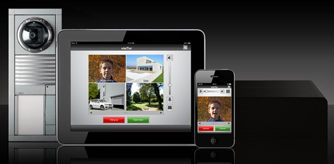 La firma alemana de tecnología de soluciones de automatización, Visiomatic, ha sacado al mercado Visitor, sistema de videocontrol de acceso integrado en el iPhone y el iPad que permite abrir la puerta, controlar los accesos de la vivienda y hablar con el visitante. El sistema Visitor se activa de manera automática cuando alguien llama al videoportero. En la pantalla del smartphone o la tableta se puede ver la imagen de la puerta, escuchar al visitante y hablar directamente con él. Permite, asimismo, aceptar la llamada o abrir la puerta con el botón verde, como es habitual en el iPhone, o finalizar la llamada con el botón rojo. Este sistema permite, en plus, monitorizar las diferentes cámaras de un sistema de videovigilancia, pudiendo ver hasta 4 dispositivos a la vez.