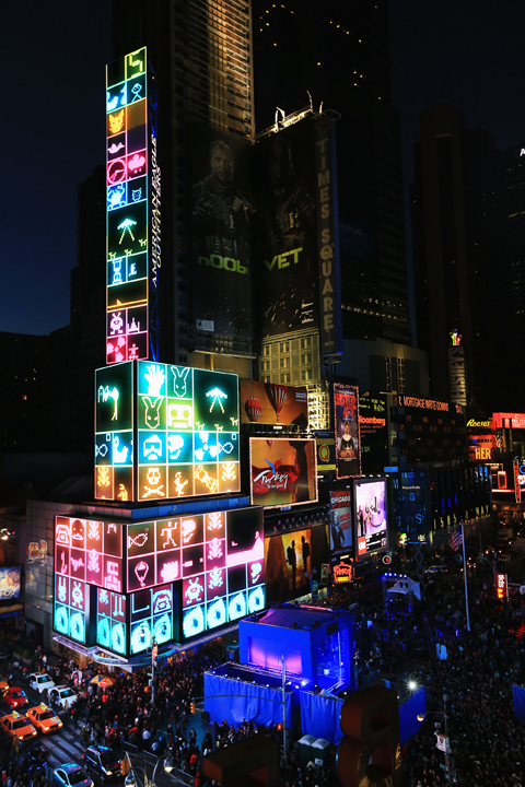 Todas las pantallas electrónicas eran controladas desde un servidor móvil alimentado por ocho millas de cable distribuidas entre cuatro manzanas cuadradas de la city. Combinando bailarines reales con imágenes de 200 pies de altura generadas por computadora, un edificio de Times Square fue transformado en una entidad viviente. Se hizo para que pareciese como si se estuviera llenando con agua, para luego “derretirse” delante de una multitud compuesta por más de 30.000 personnages.