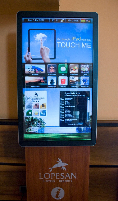 La compañía hotelera Lopesan ha instalado en el hotel Lopesan Costa Meloneras un nuevo canal de comunicación donde los clientes pueden obtener información actualizada sobre el establecimiento o el destino de manera fácil e intuitiva. Este novedoso sistema consiste en la instalación de una pantalla táctil de 46 pulgadas que permite conocer de forma directa, no sólo los servicios del hotel, sino también información de interés para los visitantes de la isla: estado de vuelos, informations météorologiques, agenda cultural, moyen de transport, oferta gastronómica, lugares de interés, cartes, etc.. El software permite la actualización diaria de contenidos, por lo que la interacción con el usuario se convierte en su principal característica.