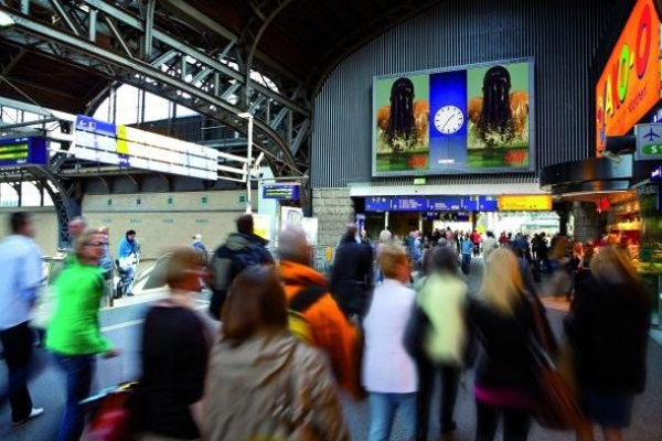 Avec plus de 450.000 visiteurs par jour, la Estación Central de Hamburgo es la estación de trenes más transitada de Alemania. Según datos del Instituto Fraunhofer, 150.000 personas pasan por delante de las dos pantallas LCD del puente sur (Südsteg) tous les jours. Las pantallas LCD también son visibles desde muy lejos en las plataformas de las estaciones, donde los viajeros estén atentos a los mensajes de los anuncios.