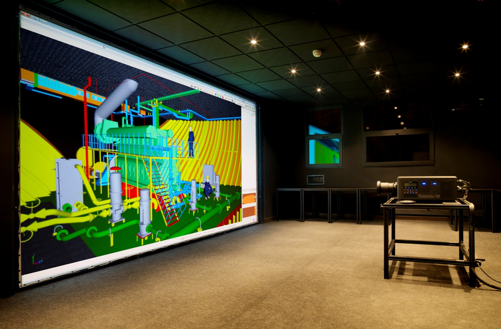 El astillero de Navantia en Cartagena (Murcie) acaba de inaugurar su nuevo Centro de Diseño Virtual (CDV) que cuenta con un proyector Christie Mirage WU7K-M para la visualización y navegación en 3D de los modelos de los buques que se construyen en esta empresa pública española dedicada a la construcción naval militar. Actualmente se encuentra a pleno rendimiento y es utilizado para la visualización del modelo virtual del submarino de la serie S-80 que desarrolla Navantia para la Armada Española.