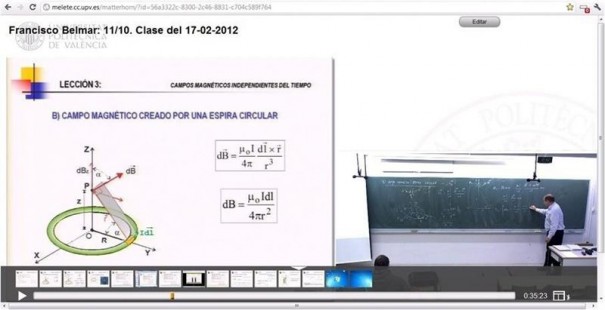 La Universitat Politècnica de València ha puesto en marcha una innovadora iniciativa de videoapuntes on line, grabaciones multimedia en alta definición de las clases impartidas en la UPV, a las que el alumno puede acceder a través de una plataforma de teleformación.