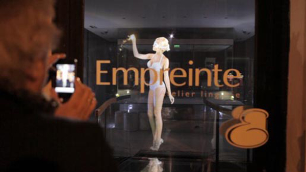 En la búsqueda de nuevas herramientas digitales que atraigan al consumidor y creen engagement, Empreinte, l’Atelier lingerie, una compañía francesa dedicada a la venta de lencería y ropa interior para mujer, ha buscado una novedosa forma de vender moda íntima creando el holograma de una modelo que se pasea de noche por la tienda que esta firma tiene en París mostrando los productos que se venden en dicho establecimiento.