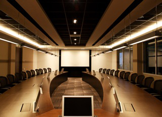 La sala de reuniones está equipada con monitores AH19D216A y con una pantalla de proyección central, de manera que todos los equipos quedan ocultos cuando no se necesitan.