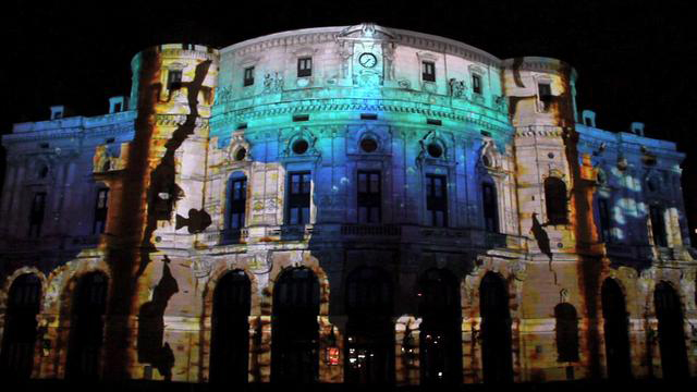 La productora barcelonesa Perla28 ha realizado un espectacular mapping sobre la fachada del Teatro Arriaga de Bilbao en el marco de la cuarta edición de la ‘Noche Blanca’ de la capital vizcaína, un evento cultural que incluye más de una decena de espectáculos de música, animación y artes escénicas.